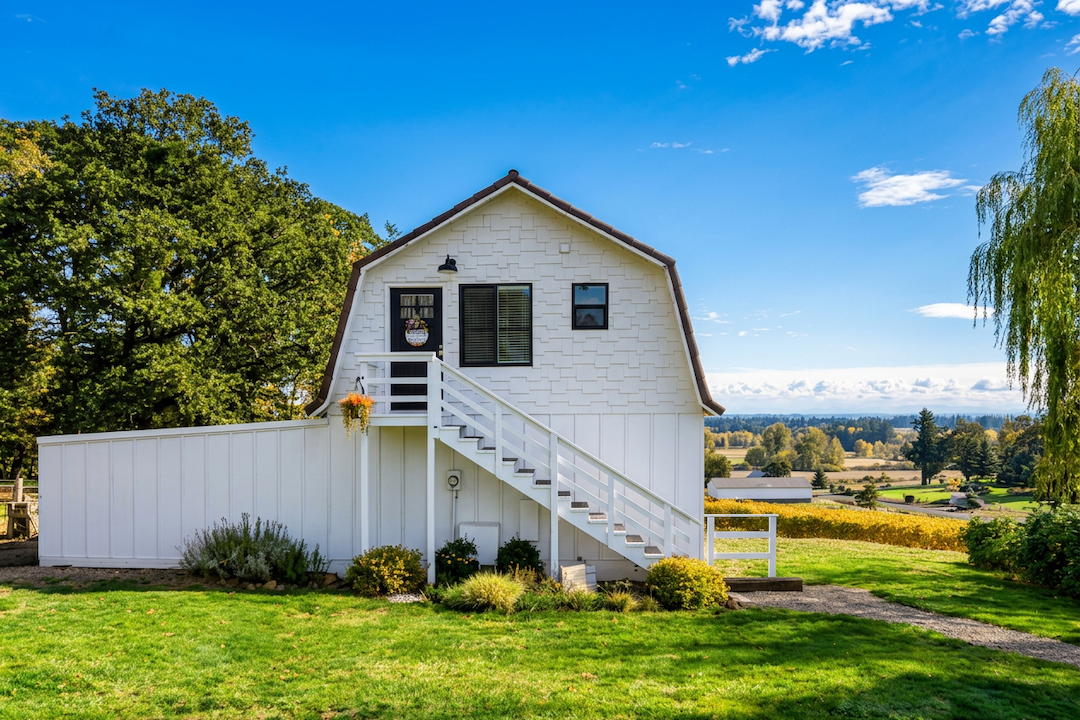 Perfectly positioned in the heart of the Eola-Amity Hills, the Vineyard Barn places you among some of the Willamette Valley’s most scenic vineyards and acclaimed wineries. Enjoy a tasting at nearby Bryn Mawr, Bethel Heights, or Cristom Vineyards, explore local favorites in the charming town of Amity, just minutes away. With Salem, McMinnville, and the Oregon Coast all within easy reach, this tranquil hillside retreat offers the perfect balance of seclusion and accessibility in Oregon Wine Country. Inside, the studio combines rustic charm with quiet sophistication. A queen memory foam bed dressed in luxurious linens invites deep, restorative rest, while large windows frame views of Mount Hood and the LaLa block of Pommard vines below. The full bathroom features a rejuvenating shower with an on-demand water heater and plush towels for added comfort. The well-equipped kitchenette makes it easy to prepare light meals or pair small bites with your favorite bottle from the day’s tastings