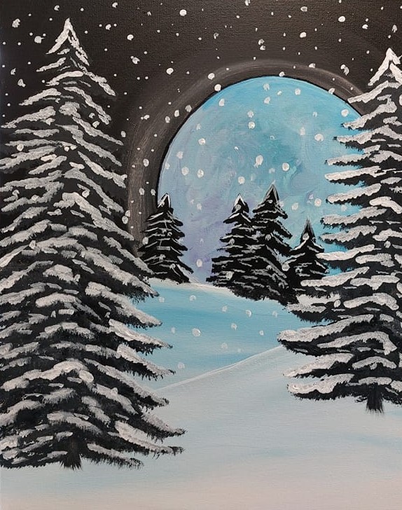 FUN Paint-Party for Adults 21+ - No experience required - All supplies included - Fun guaranteed! Painting "Winter's Full Moon" - Use the Website Link for More Info & to Register.