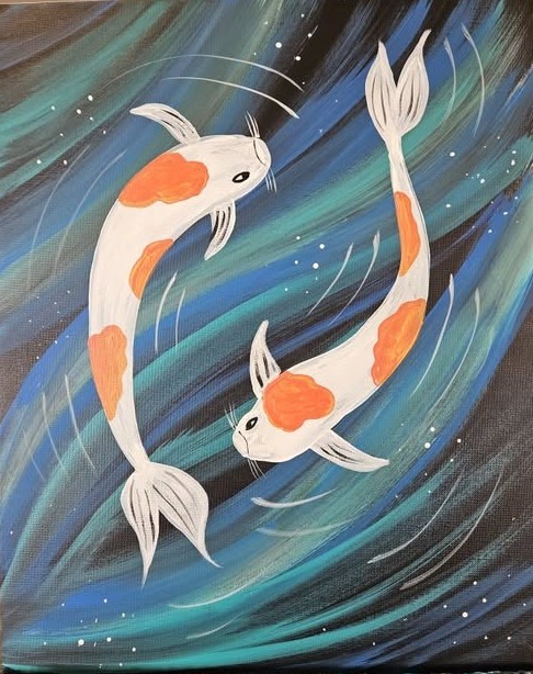 FUN Paint-Party for Adults 21+ - No experience required - All supplies & instruction included - Painting "Yin Yang Koi" - Use Website Link for More Info & Registration.