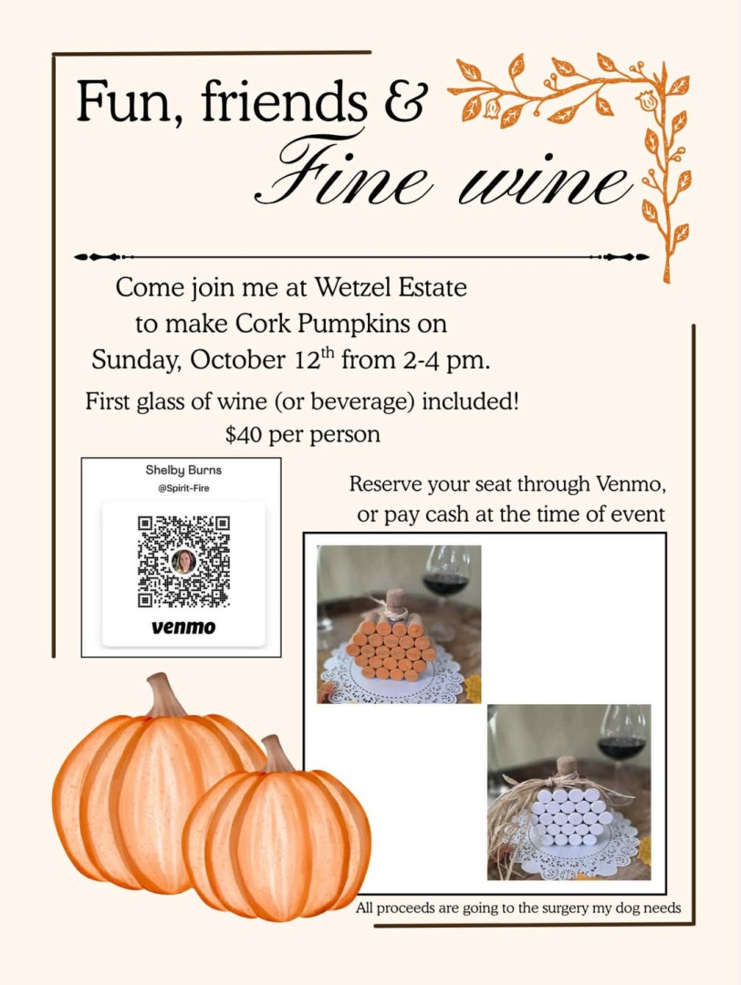 Fun, Friends & Fine Wine- Cork Pumpkin Craft Class