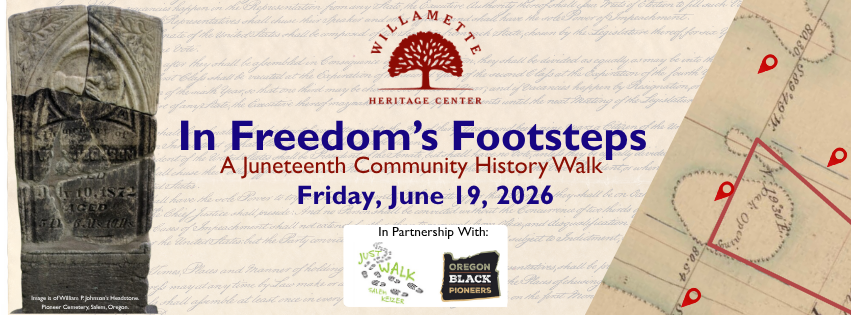 Black pioneers William P. Johnson and Elizabeth Walker were married in Marion County on October 11, 1857. Soon after, they purchased a half block of downtown Salem and made it their home. Join us as we walk to the site of the Johnson family’s home and visit other places important to the family’s experiences in Salem along the way.